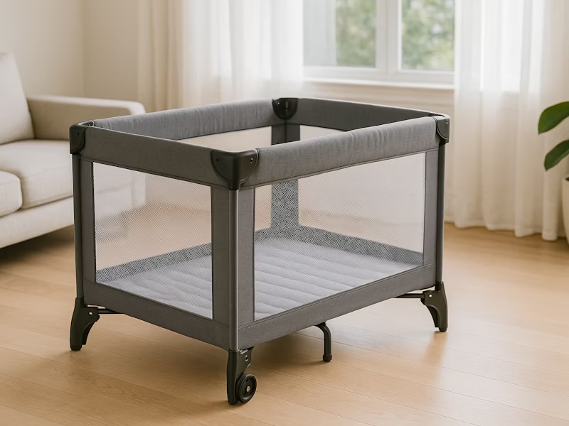 でも日本でいうベビーベッドではなく、下の写真のような小さいベビーサークル的な感じでした。