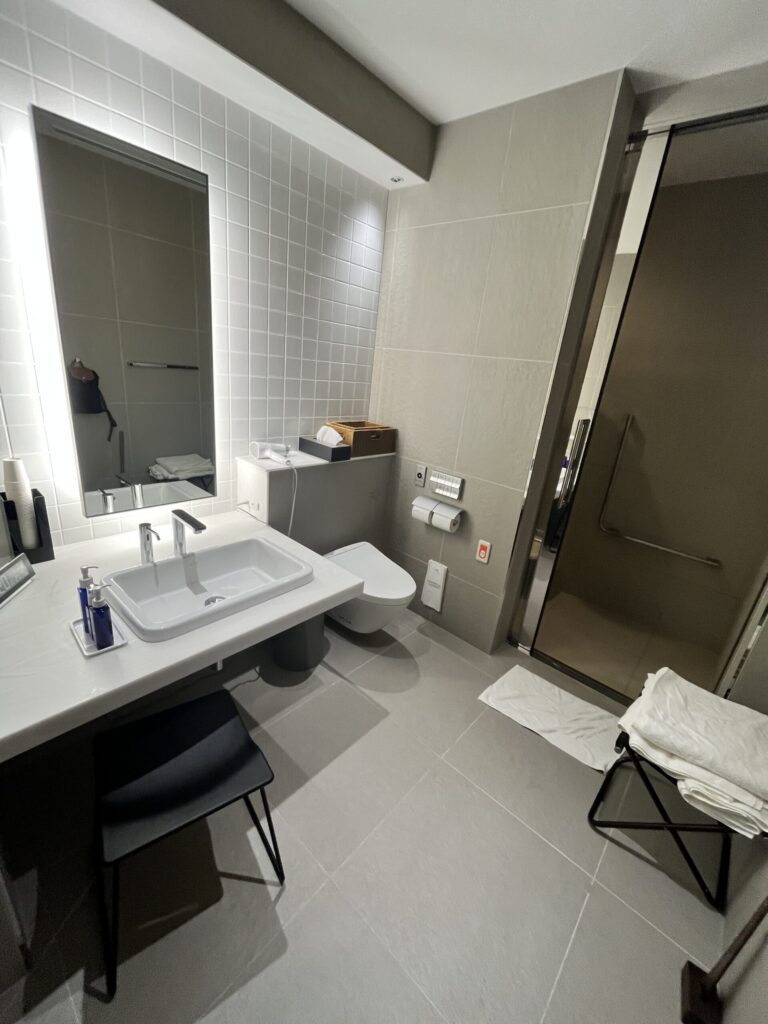 残念だった点は、事前にわかってはいたものの、お風呂にバスタブはあるものの手持ちシャワーはなく、天井に付いているシャワーのみな所💦