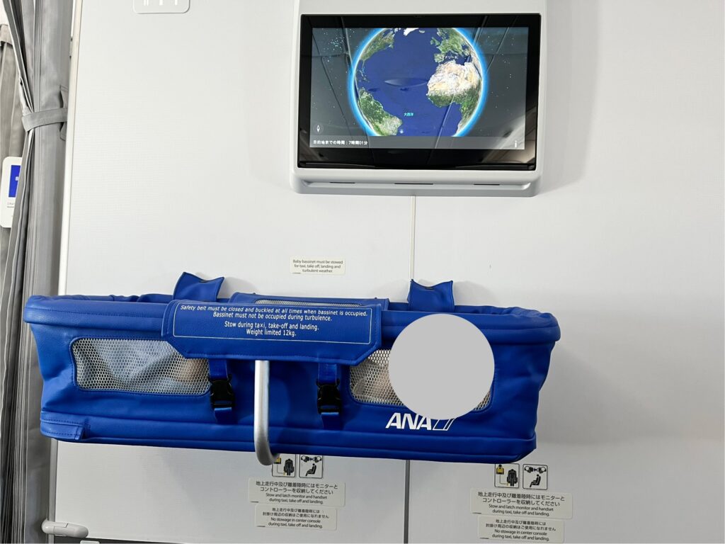 特に行きは夜行便のため、バシネットに乗れる体重(10kgまで)で、そこでも寝てくれるのであれば予約した方がこちらも休息を取ることができるのでおすすめです。