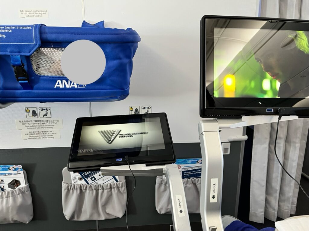 行きのフライトは夜行便で、寝てくれていたのでバシネット装着までは抱っこ紐で過ごしました。